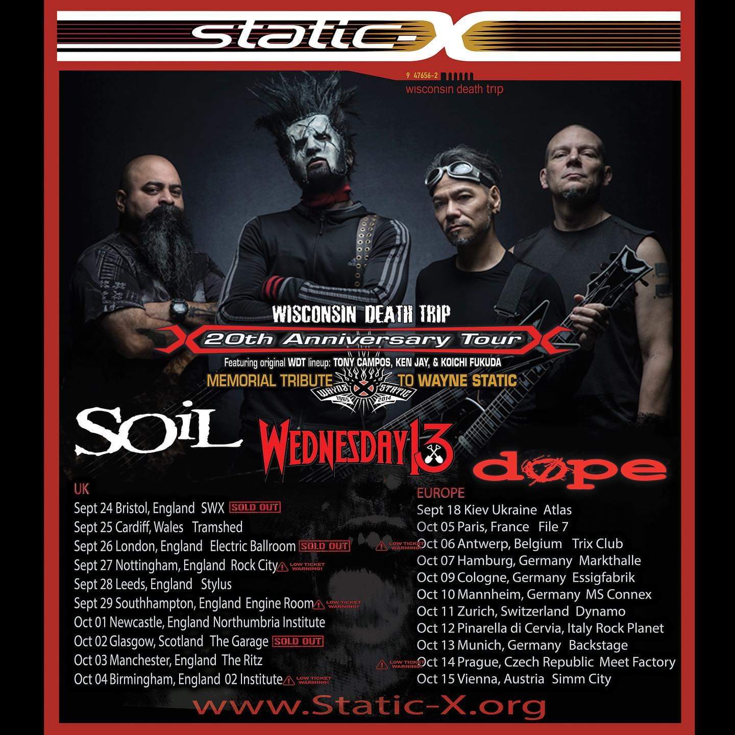 I checked out the Static X – Wayne Static Memorial + Wisconsin Death Trip 20th Anniversary Show @ The Garage Glasgow on 2/10/2019.